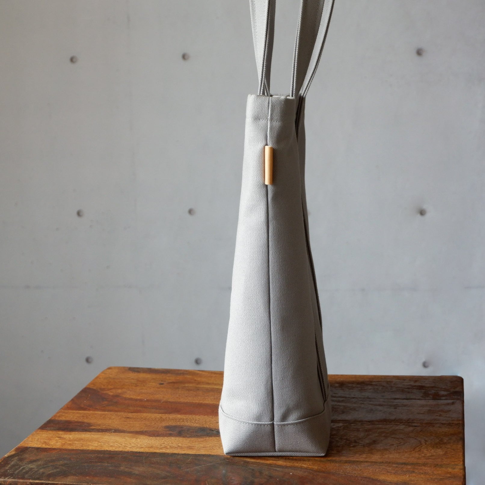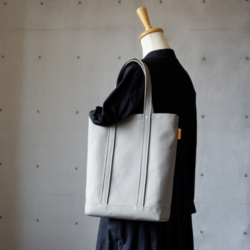 スタイリッシュでクールな印象を与える、A4縦型トート<ストームグレー>。