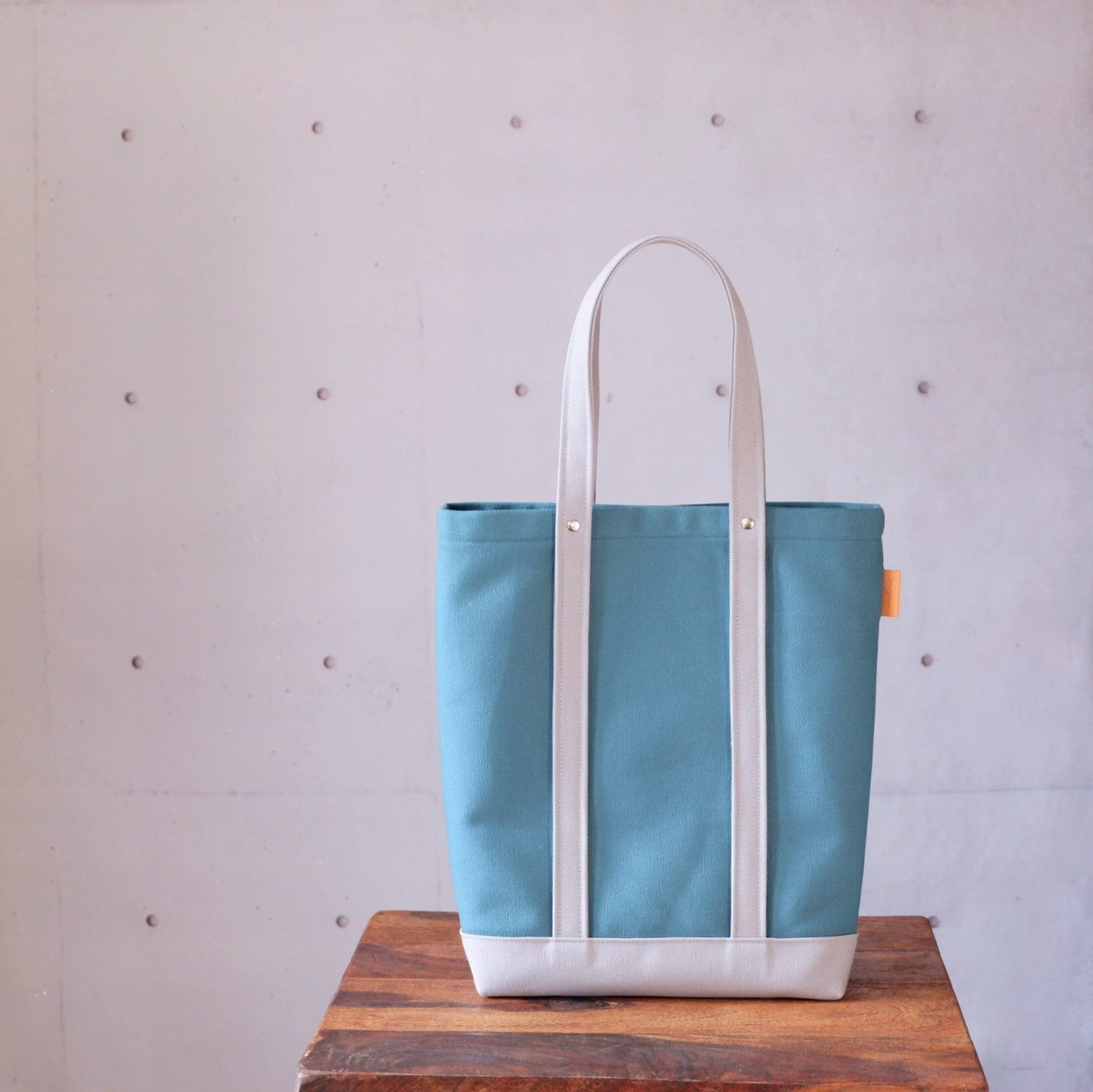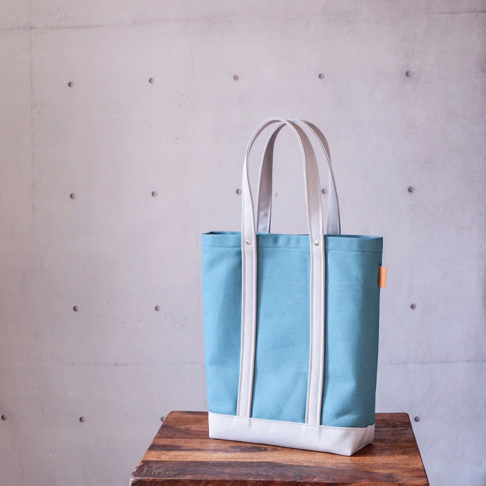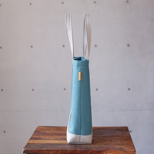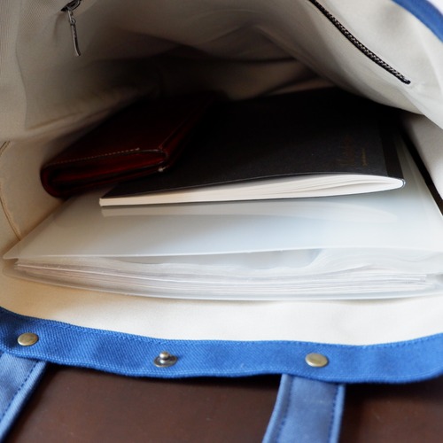 目を引くブルーが特徴の、A4縦型トート。