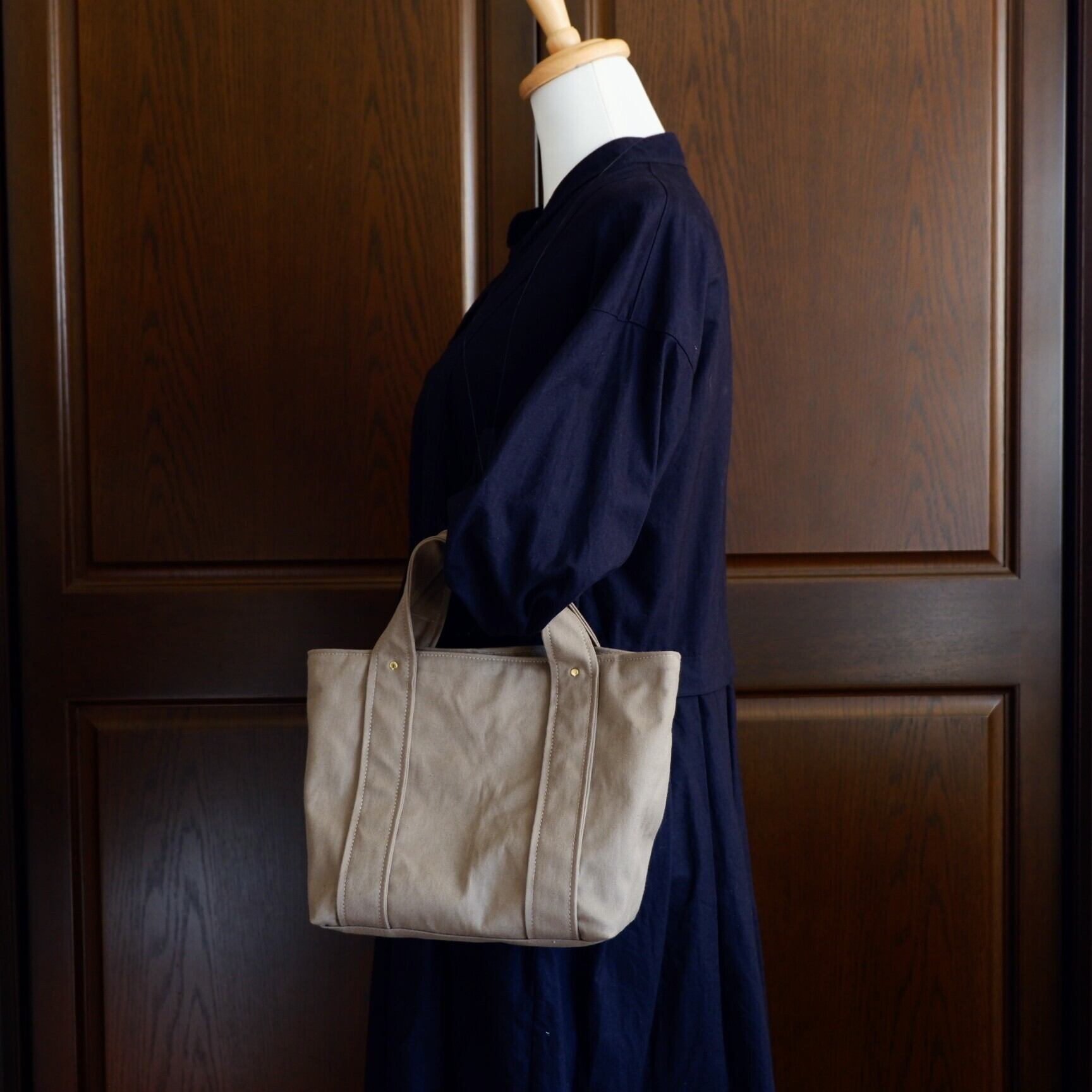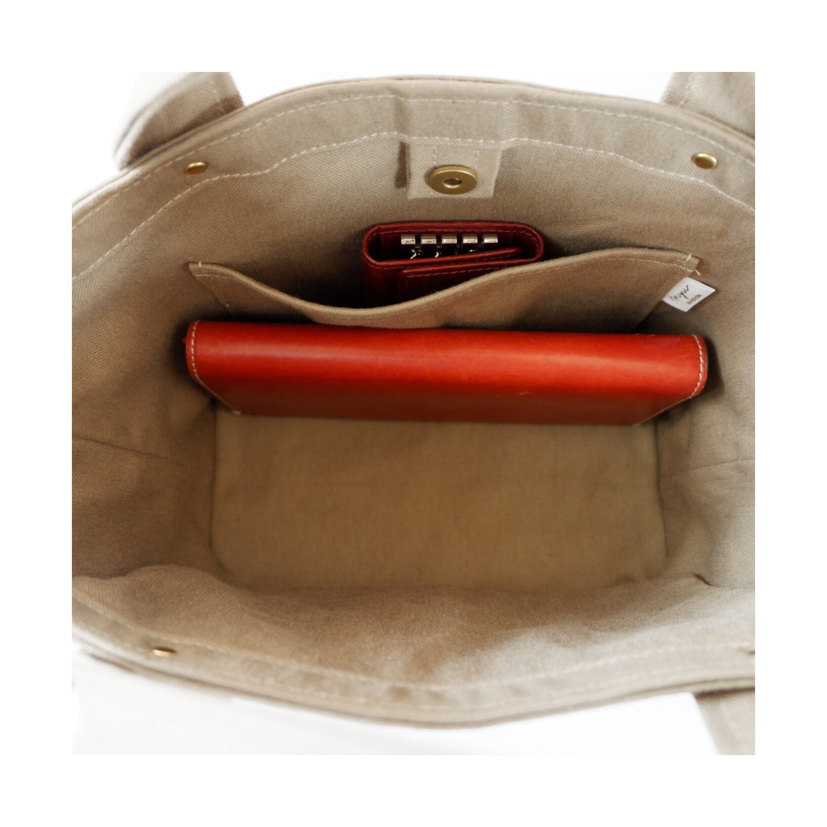 裏地にも帆布を使用し、しっかりと自立する仕上がりに。