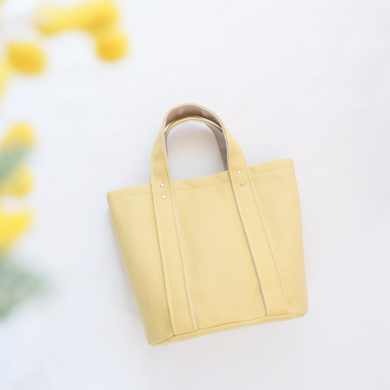 春の訪れを感じさせる、明るいミモザカラーのトートバッグ。