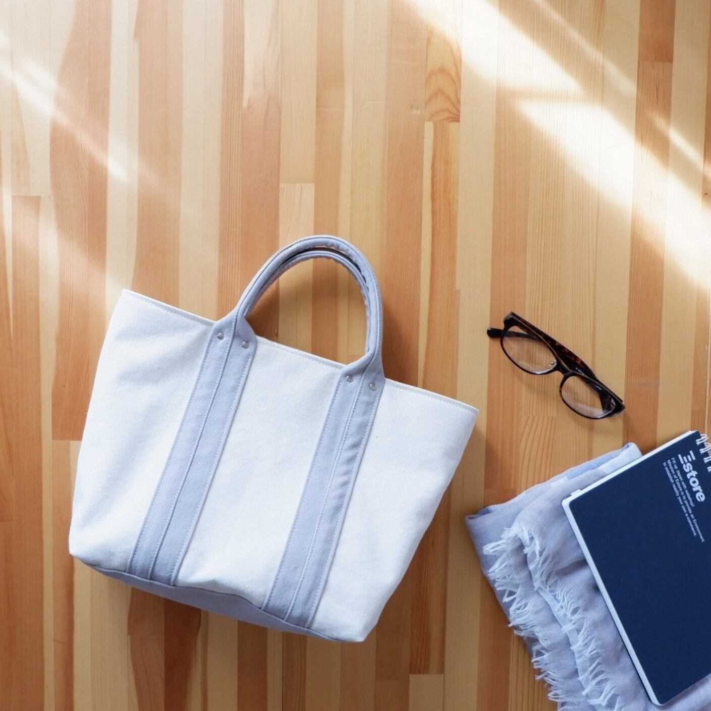 お試し価格◇やわらか帆布トート〈Breeze〉M / 生成り×グレー