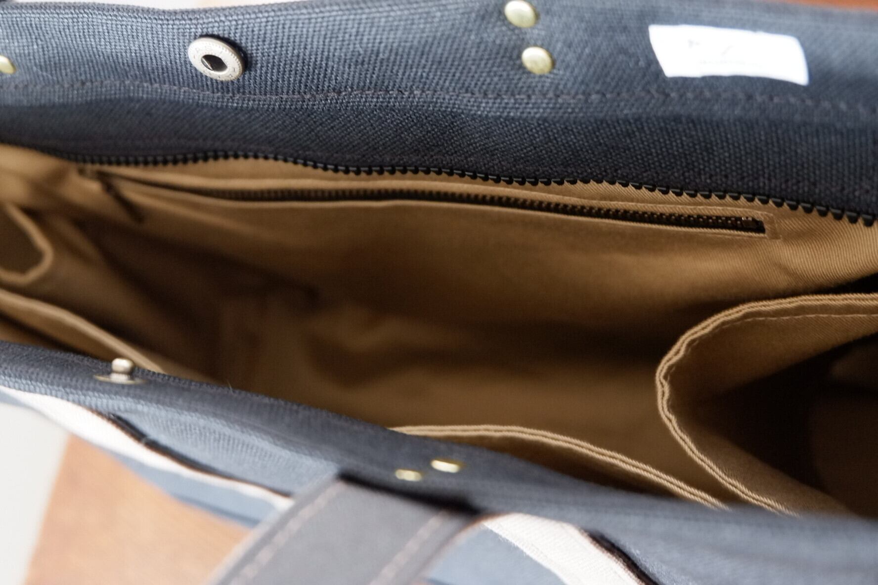 帆布やデニムで有名な岡山県倉敷市で作られています。昔ながらのシャトル織り機を使用し、職人さんが手作業で仕上げた高級帆布。