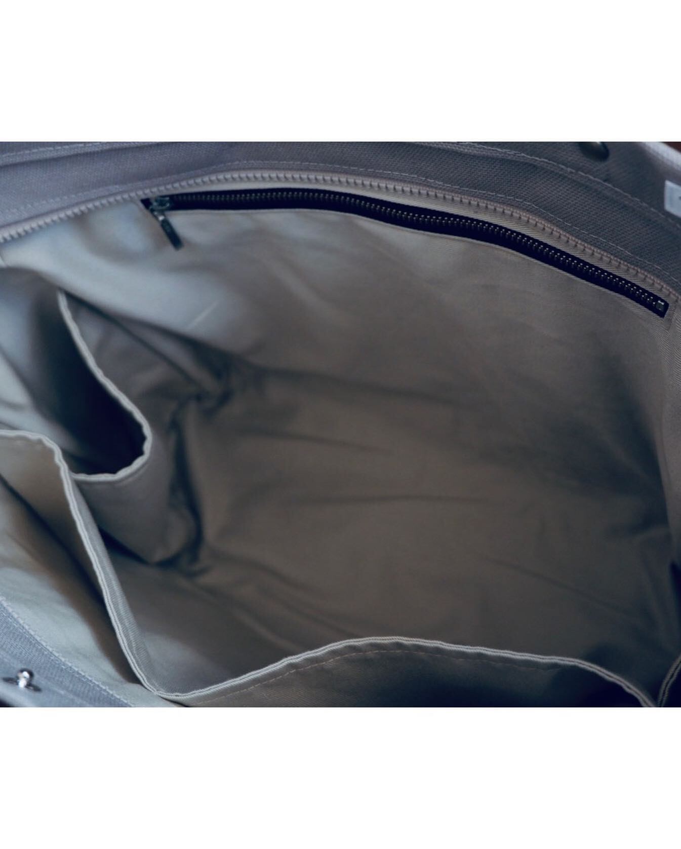本体はアイスグレーとアイボリーの優しい色合い。サイドマチを側面に付けることによりキッチリした印象で、お仕事用にも使いやすいバッグに仕上げました。