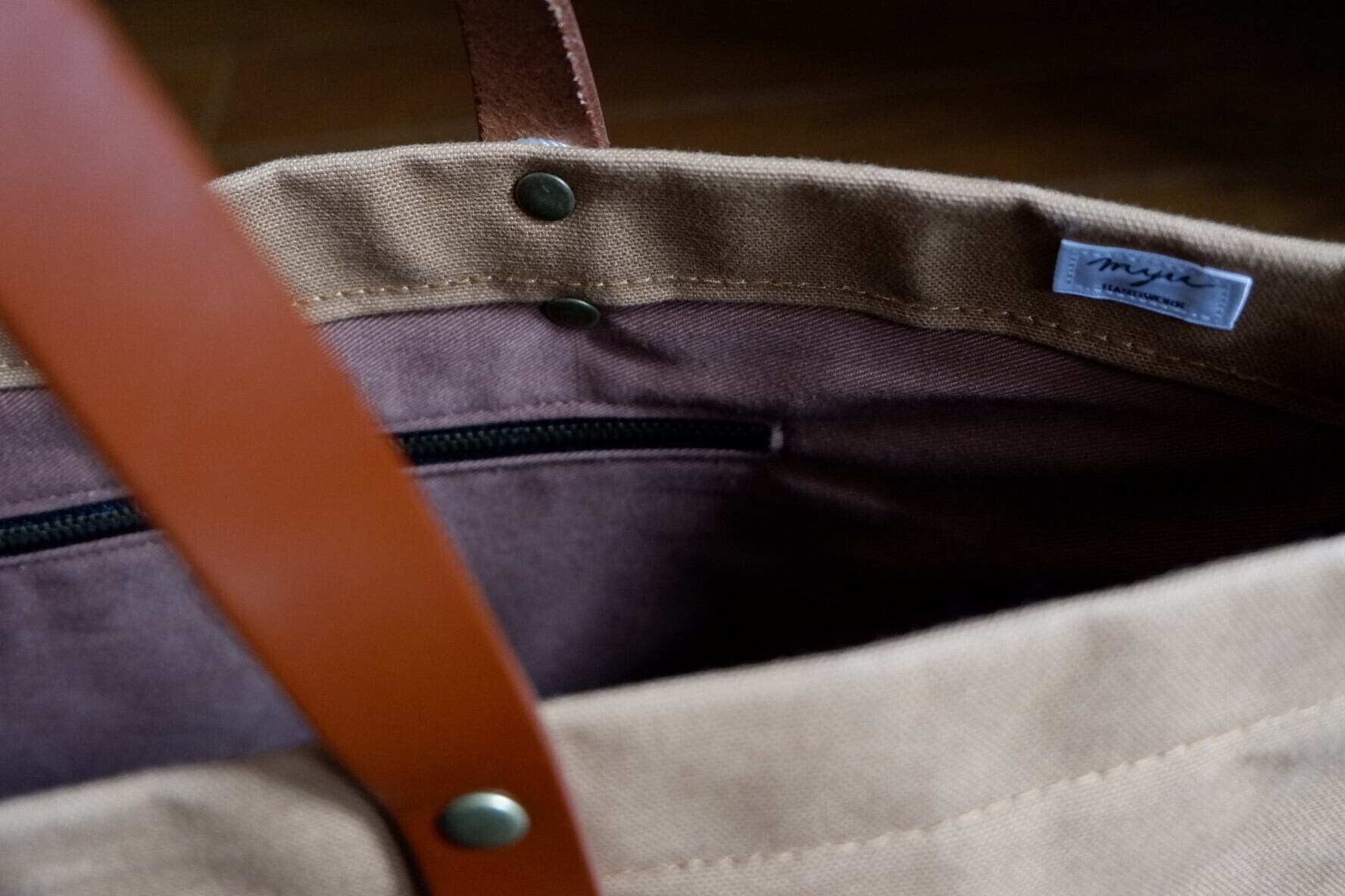 高級帆布の富士金梅、パラフィン(防水、ろうびき)加工帆布を使用しています。