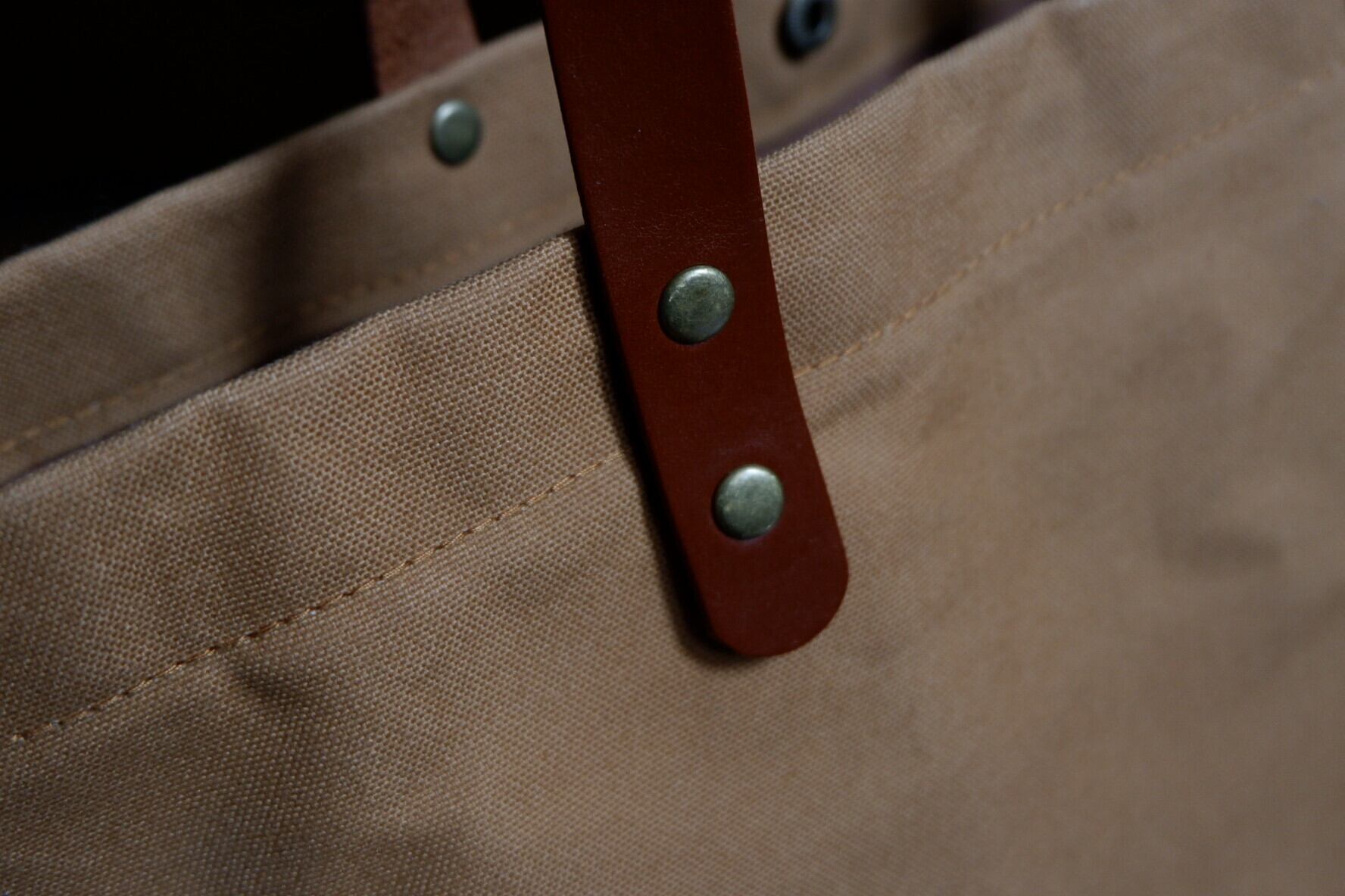 しっかりとした生地で、次第に柔らかくなる経年変化も楽しめます。表面は防水加工のため、汚れや水を防ぎます。