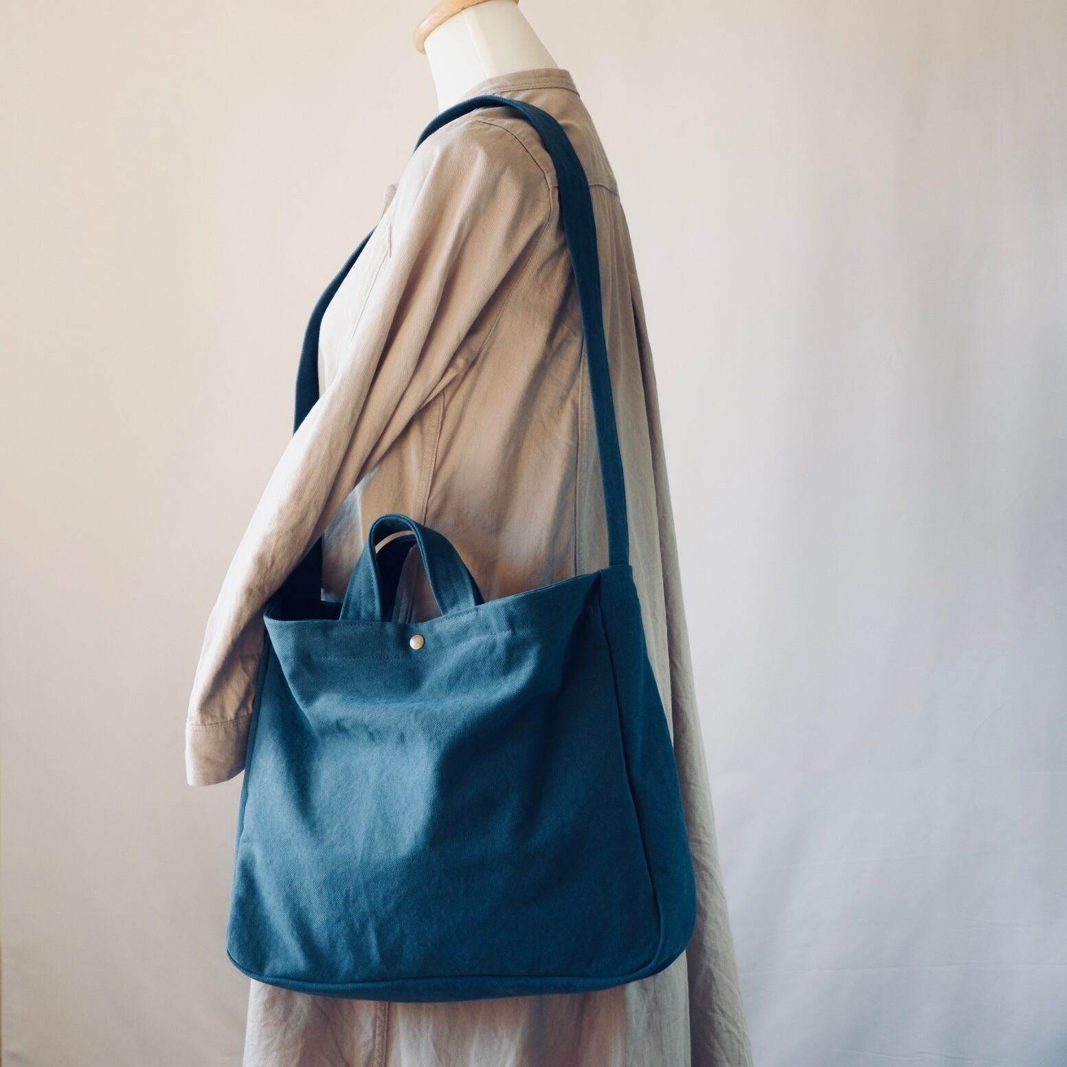 ナチュラルな風合いと、バイオウォッシュ帆布ならではの優しい手触り。ショルダーは調節できて、毎日持ちたくなるバッグです。