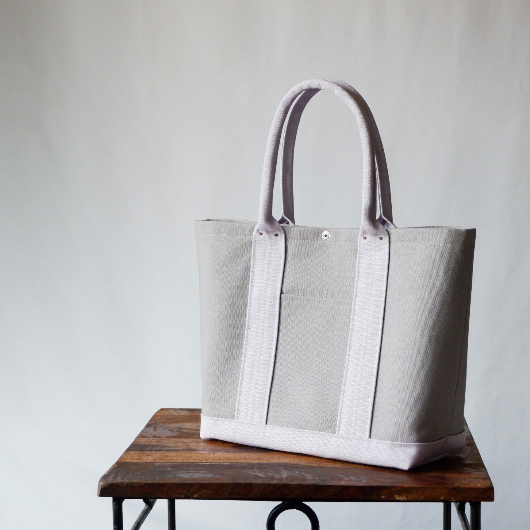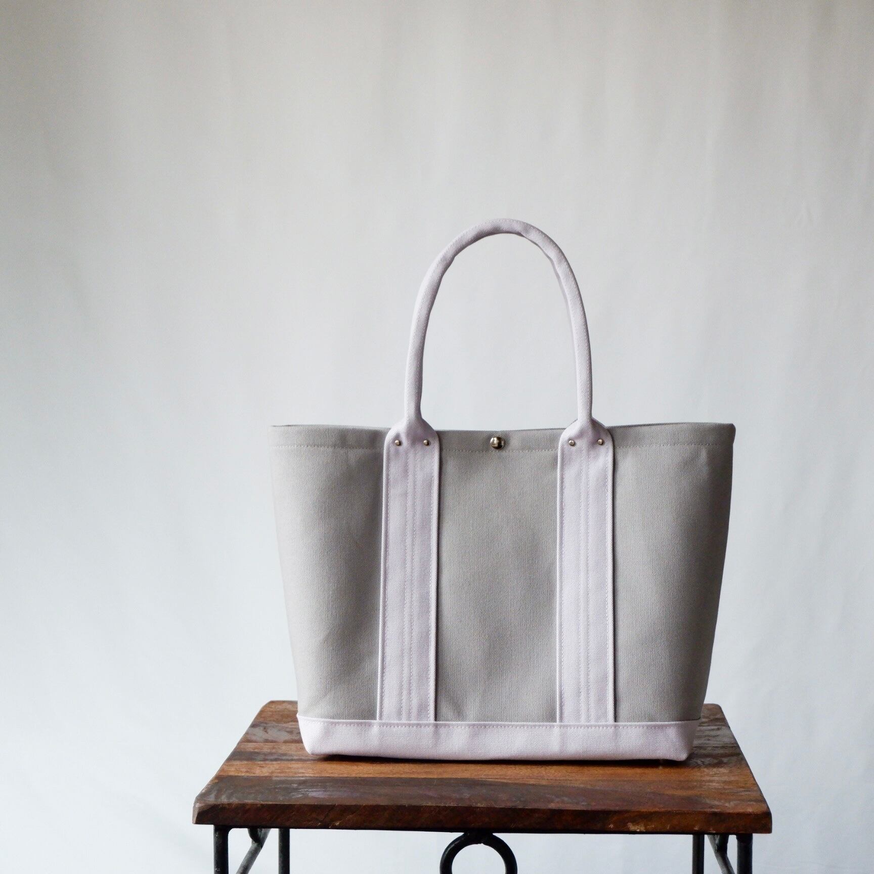 上品なストームグレーに、ライトパープルのアクセントが魅力的です。A4サイズがスッポリ入る大きさで、仕事の書類やお買い物の荷物をしっかり収納できます。 このトートバッグの魅力は、女性らしさを引き立てるデザインにあります。シンプルながらも上品で、色合いのバランスが絶妙です。