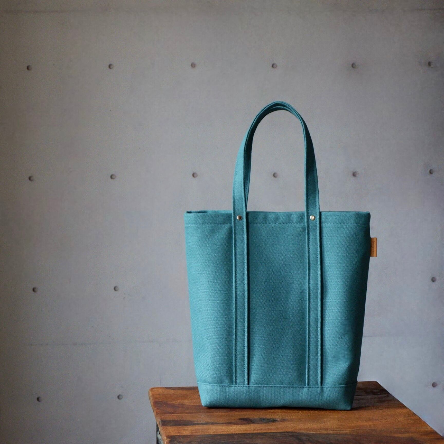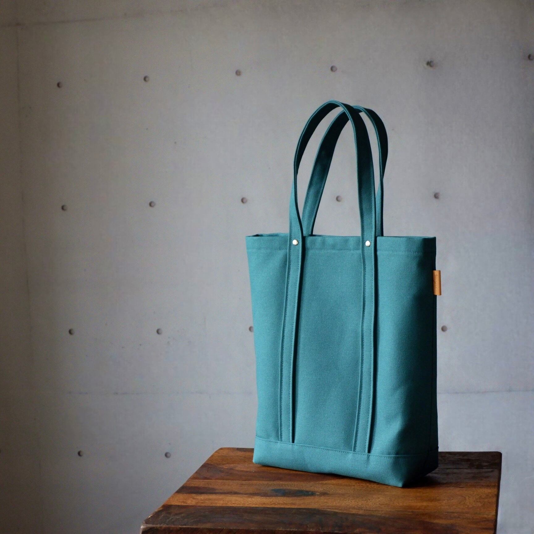 爽やかなターコイズカラーが魅力的な、A4縦型トート。