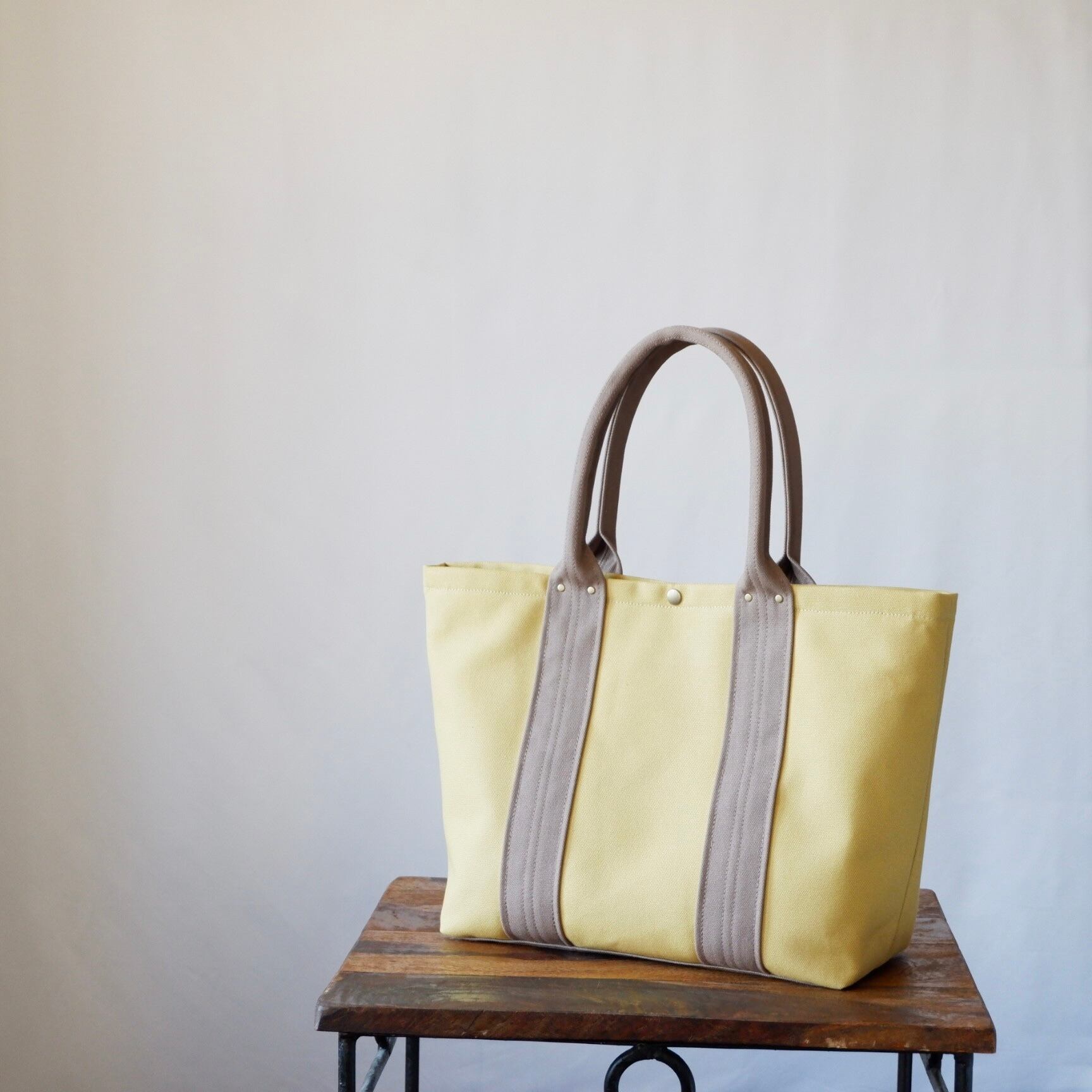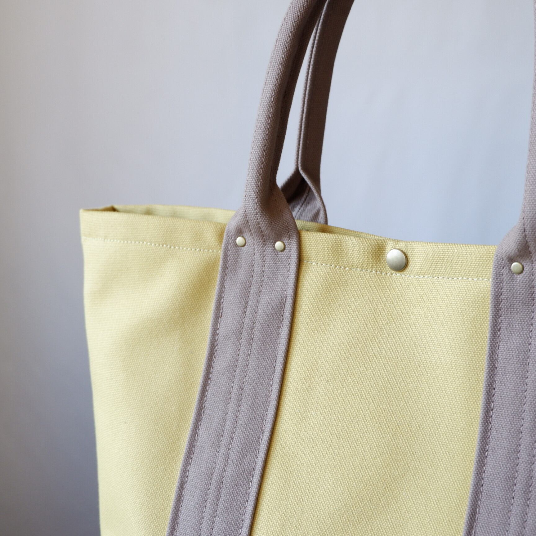 明るいミモザ色と、落ち着いたモカ色の組み合わせが魅力的なA4トート。